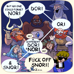 Tolkien is for nerds and if he wants to stay relevant, all that NEEDS to change! That’s why I started retelling The Hobbit except I made it COOL!! Hopefully I am still in touch with what that means exactly. Read it in order here.